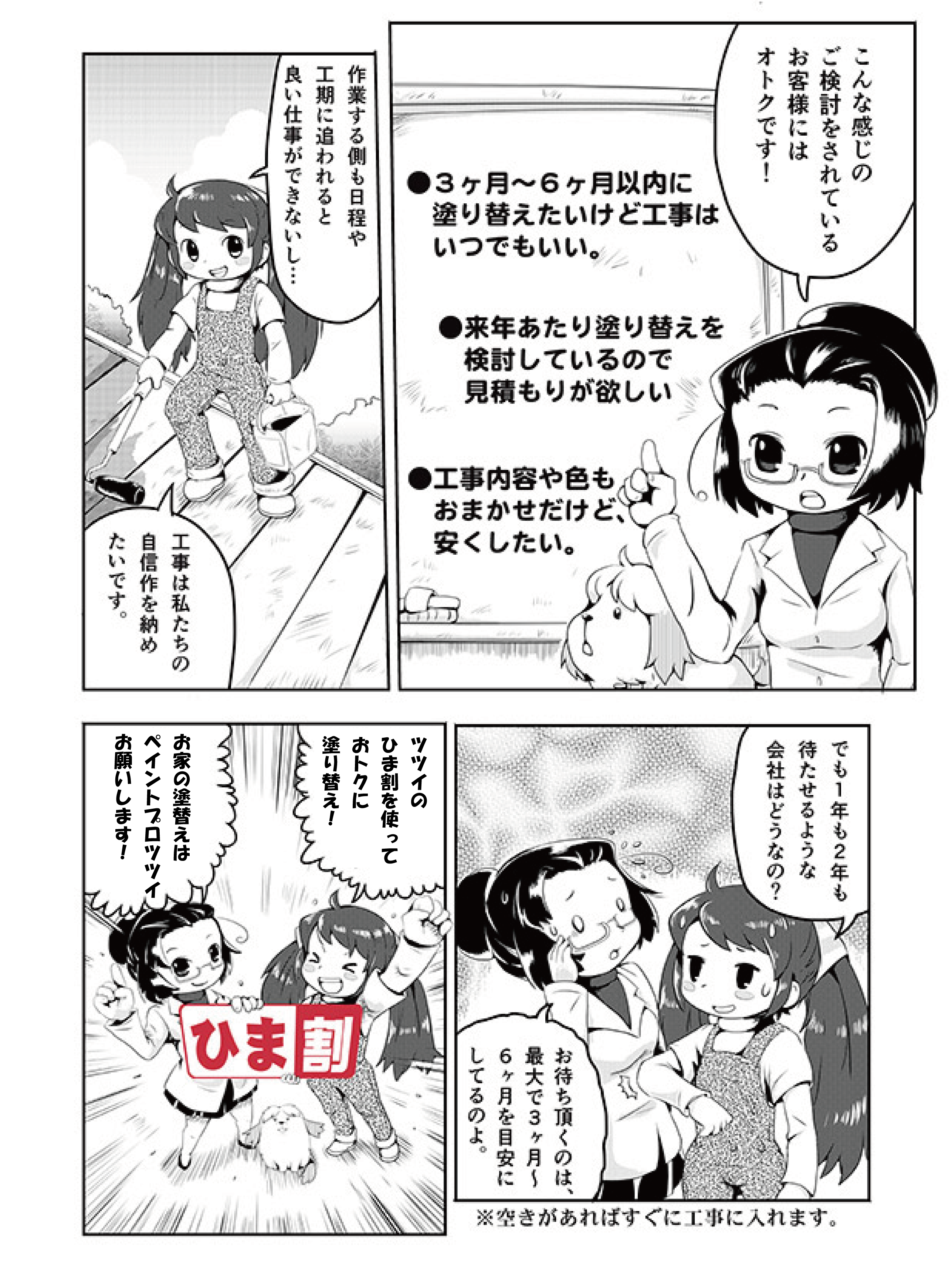 - こちらのサイトからの見積依頼にて、「ひま割」をご希望ください。なお、ペイントプロツツイの